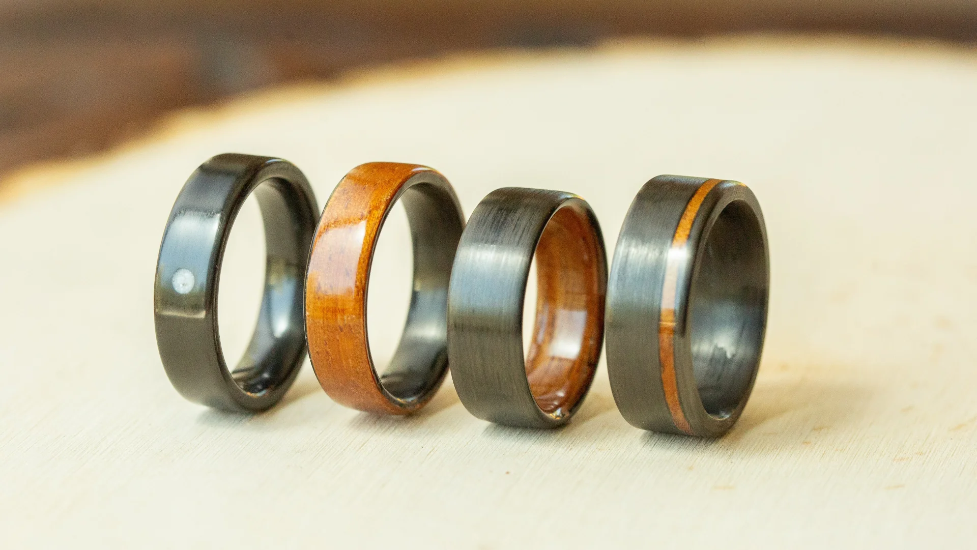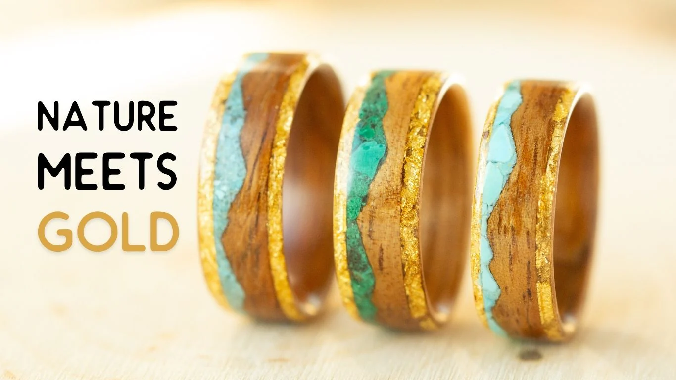 Experience the elegance of handcrafted, wood handcrafted rings made from ethically sourced and carefully selected elements found in nature.